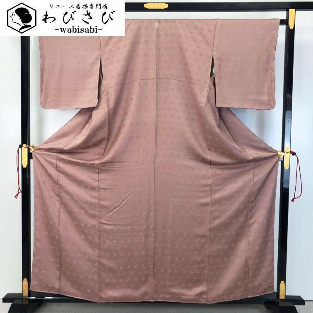 - 色無地 帯紅色 入子菱 花柄模様 しつけ糸 K-4726 着物 きもの kimono 和服 和装 中古 リサイクル着物 【送料無料】