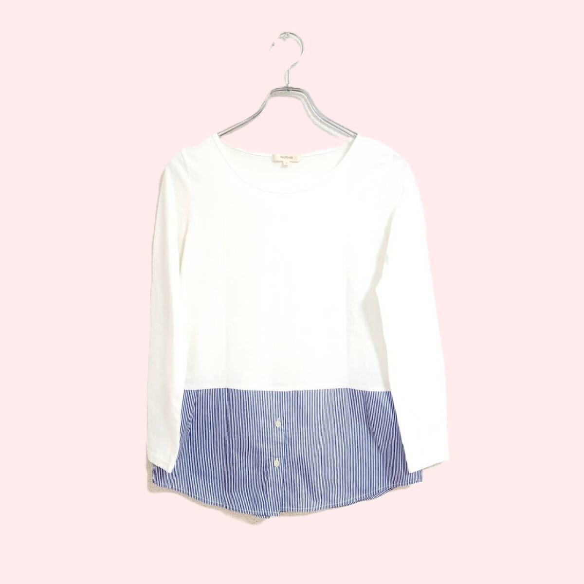 - ハッシュアッシュ カットソー ストライプ 白 青 春夏 ワンピース 美品 M