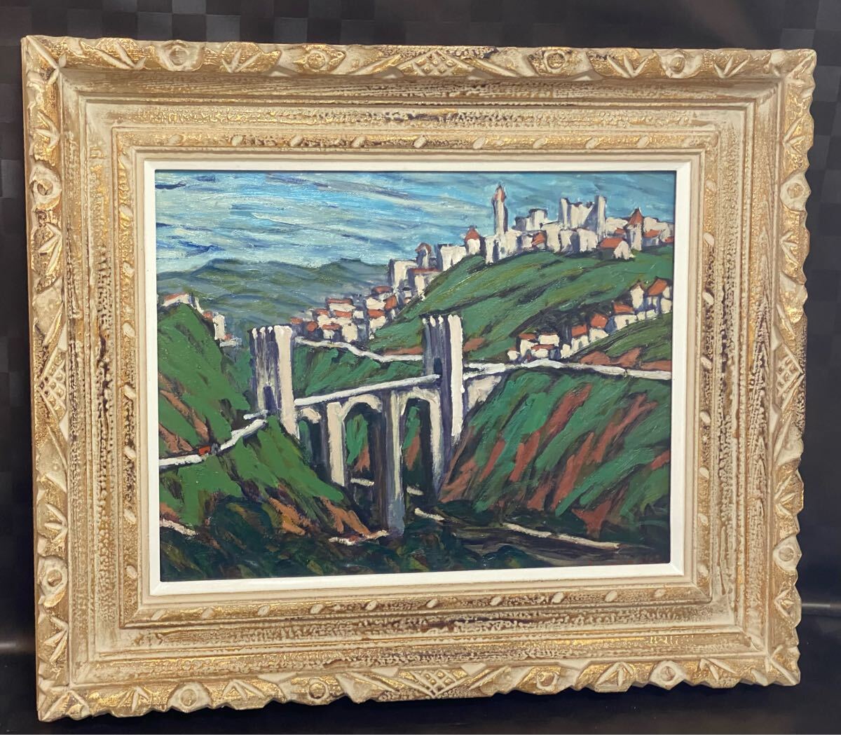 - 真作 油彩画 油絵 ヴィンセンシオ・山崎 【スペイン トレド アル・カンタラ橋】 F6号 山崎正雄 風景画 額縁 インテリア