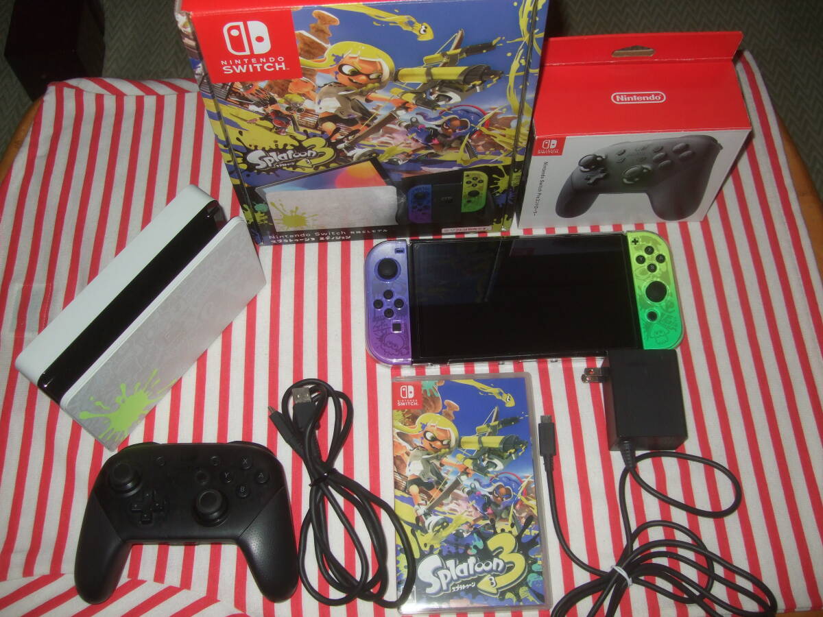 - Nintendo Switch 有機ELモデル スプラトゥーン 3 エディション Proコントローラー + ゲームソフト +おまけ付きセット! 任天堂 スイッチ