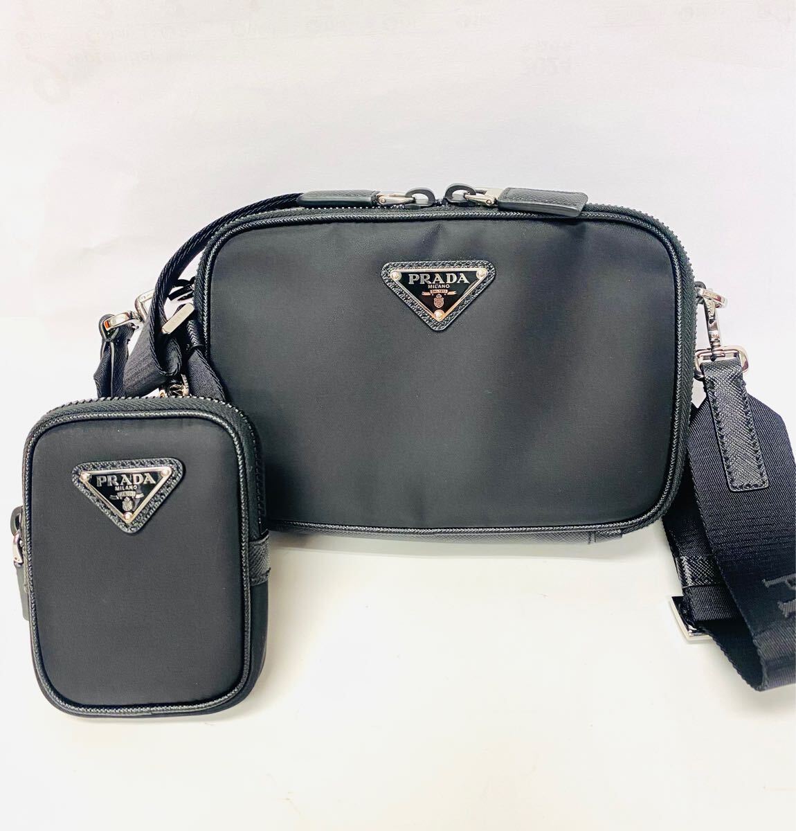 - 1回 定価34.1万 PRADA プラダ 2VHO70 ブリック ショルダー バッグ ナイロン サフィアーノレザー ネロポーチ付 国内正規カードレシート