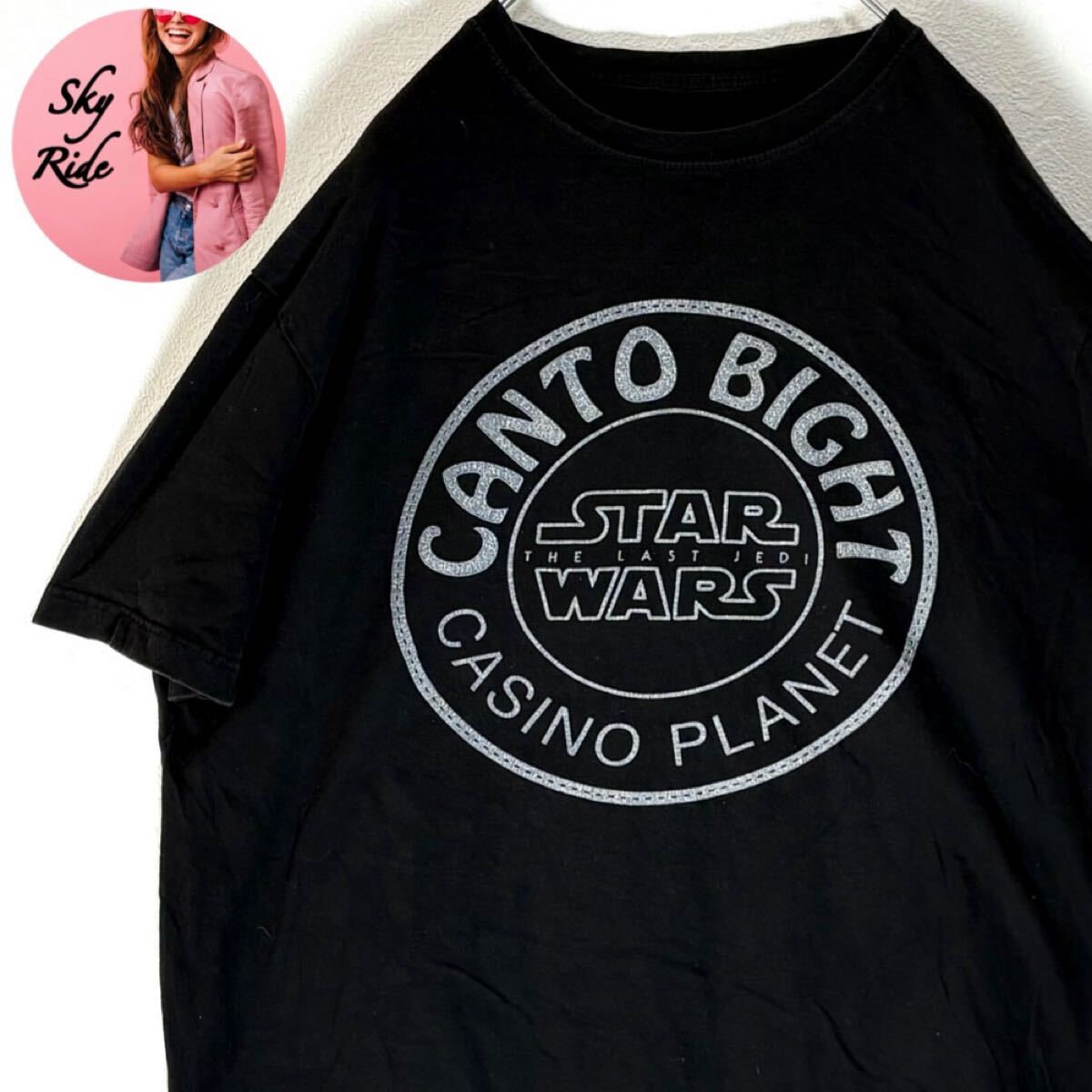 > STAR WARS スターウォーズ CANTO BIGHT サークルロゴ メンズ ビッグシルエット Tシャツ ブラック 2XL 古着 #SB0157