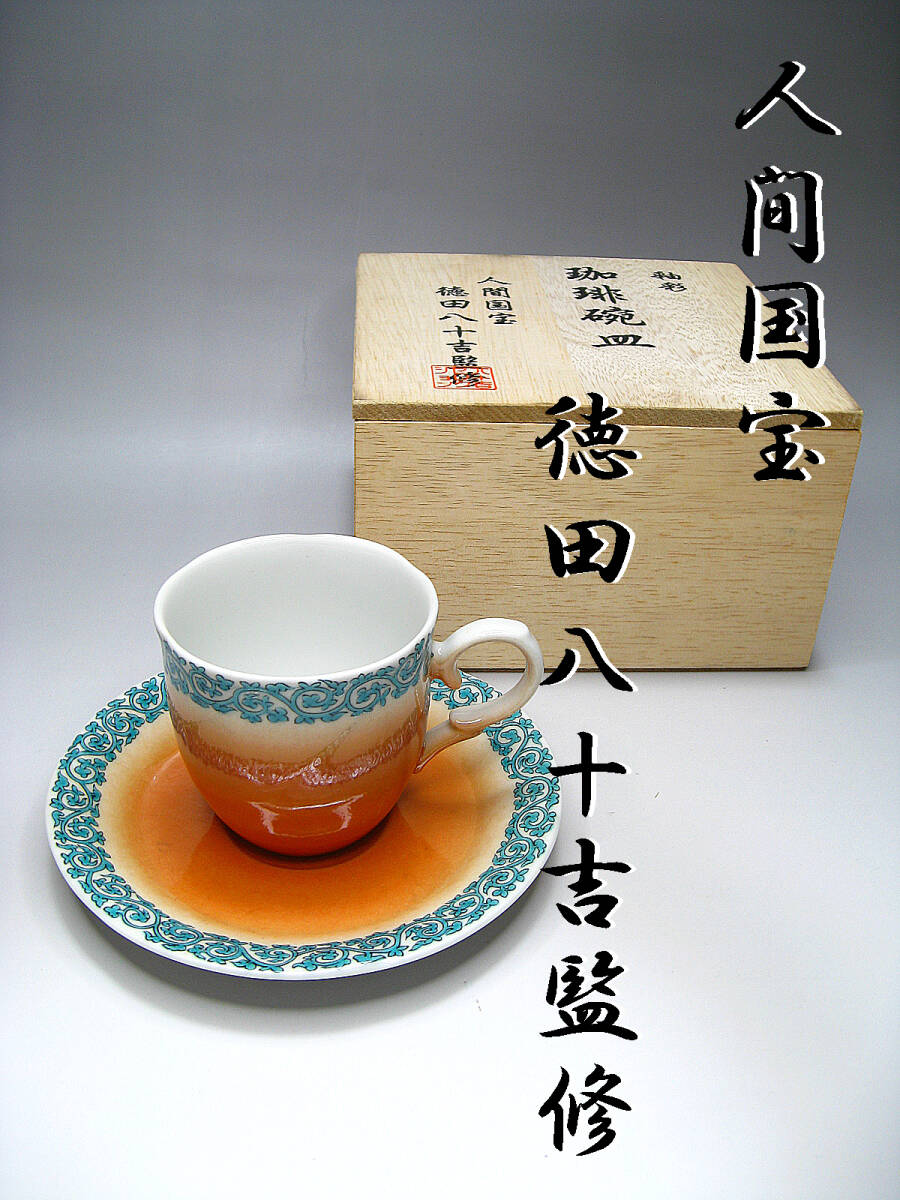 > #人間国宝 #徳田八十吉監修 #万平窯 #カップ&ソーサー #九谷焼 #釉彩 #珈琲碗皿 #木箱付き 現状品