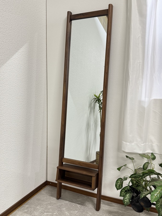 - アウトレット ミラー 鏡 幅40cm 立て掛け 収納付き 姿鏡 全身鏡 天然木 ウォールナット 北欧 カルメン 完成品 現品限り 70515C
