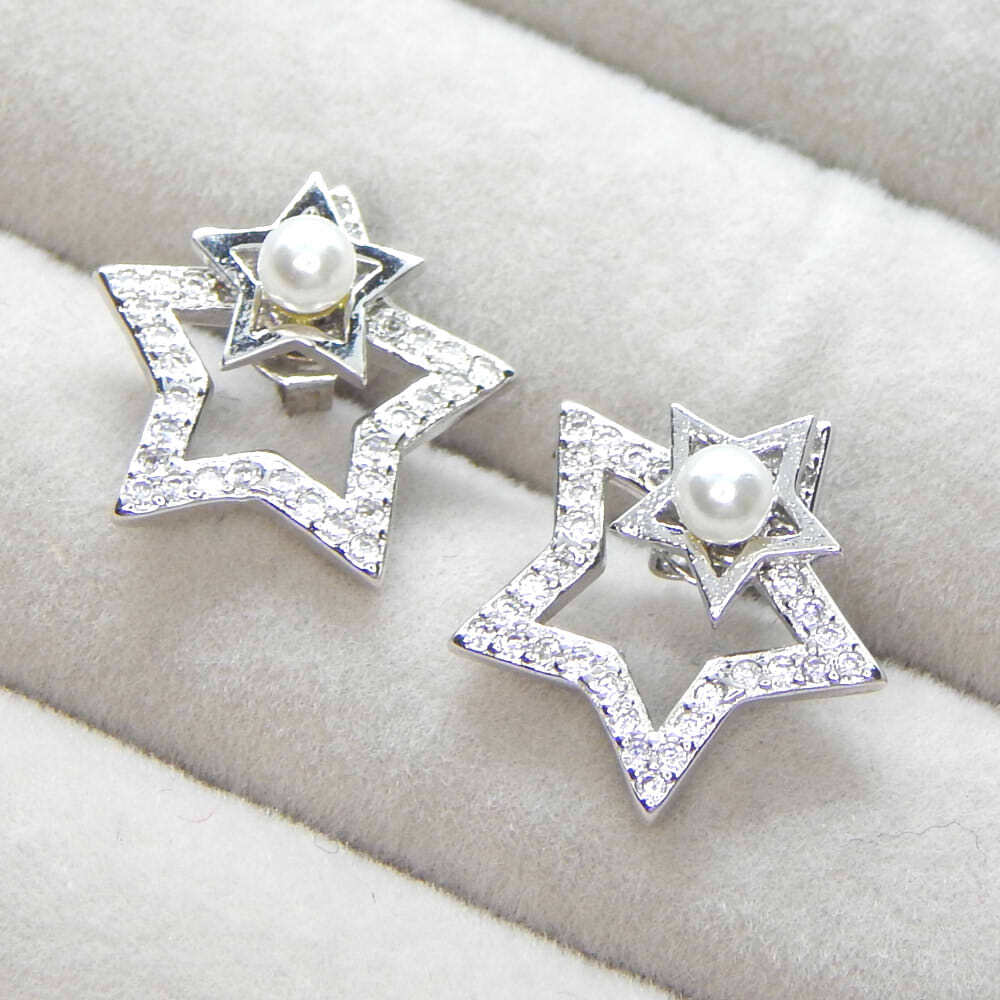 - 新品★送料無料 極上の逸品 レディース 絢爛 オススメ 限定 2WAY 淡水真珠 星 CZダイヤモンドピアス ジルコニア シルバー925 プラチナ仕上