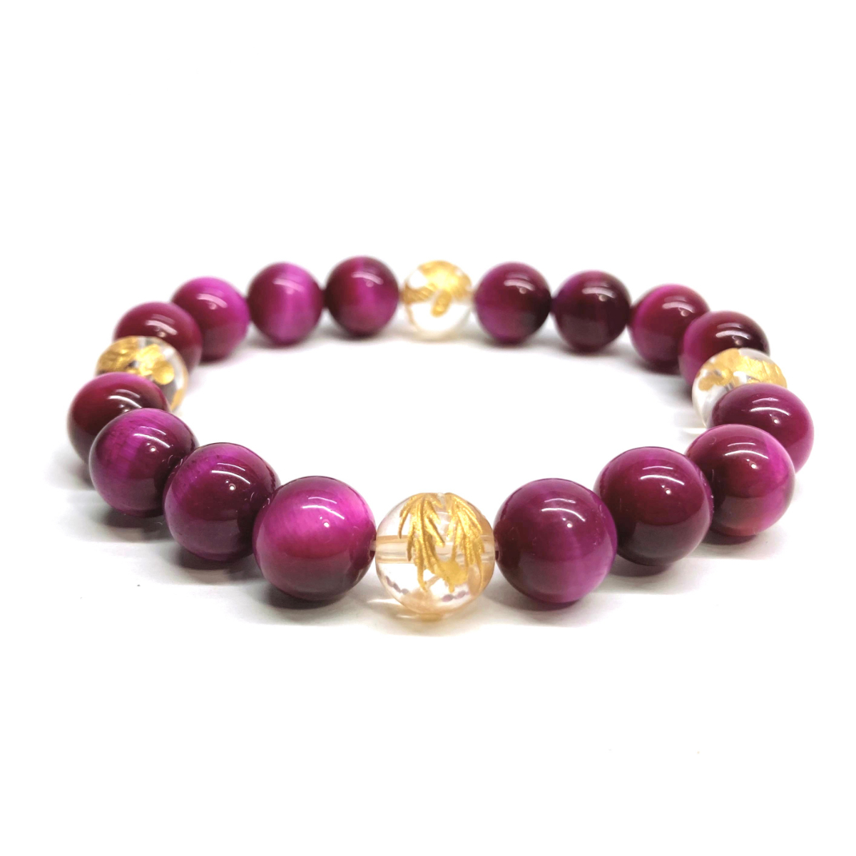 > 10mm 四神獣金彫水晶×ピンクタイガーアイ パワーストーン ブレスレット天然石 運気上昇 開運 金運 恋愛運 青龍 白虎 玄武 朱雀 ☆