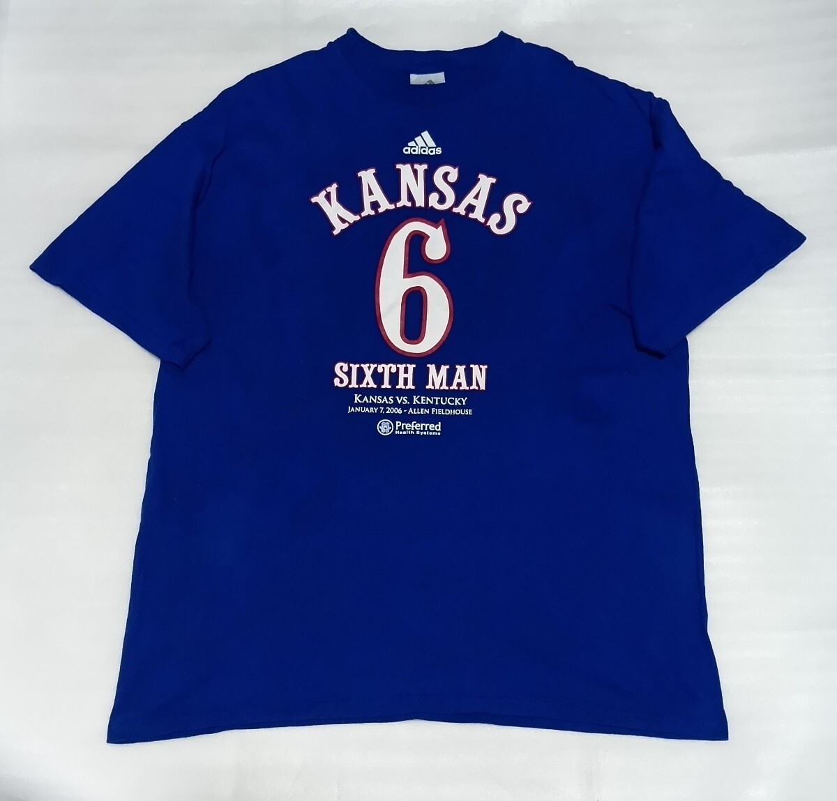 - adidas.com TEEサイズL KANSAS青色ブルーSIXTH6MANスポーツ半袖TシャツCOTTONファッションPERFORMANCEバックBIGプリント ティー アディダス