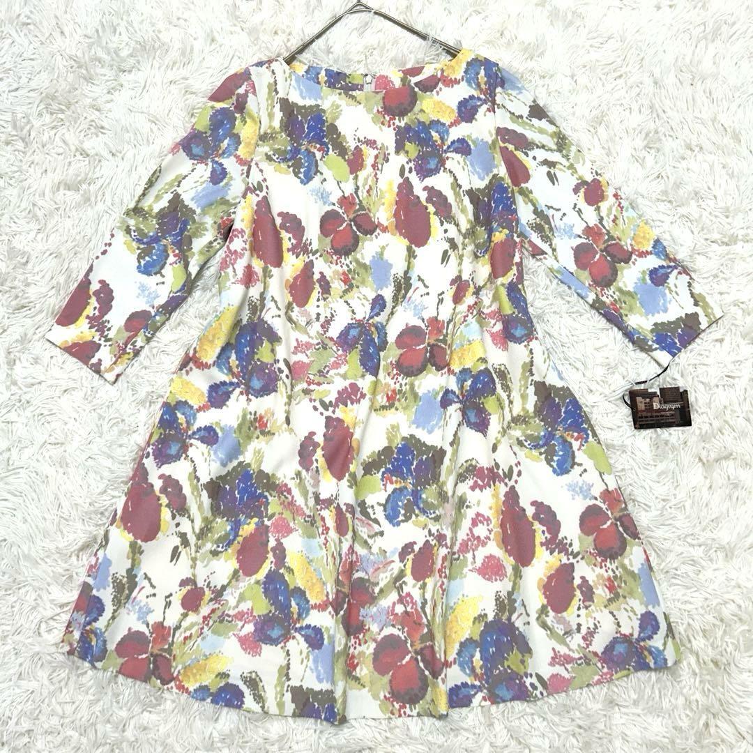 - 【タグ付き】 Diagram ダイアグラム ワンピースミモザ 七分袖 Aライン グレースコンチネンタル 花柄 ジョーゼット