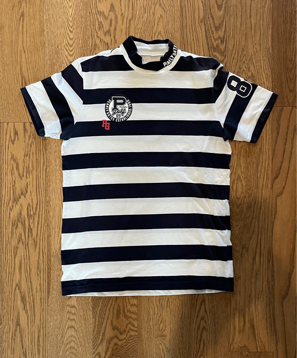 - パーリーゲイツ モックネックシャツ 半袖 サイズ4 紺系 ボーダー柄