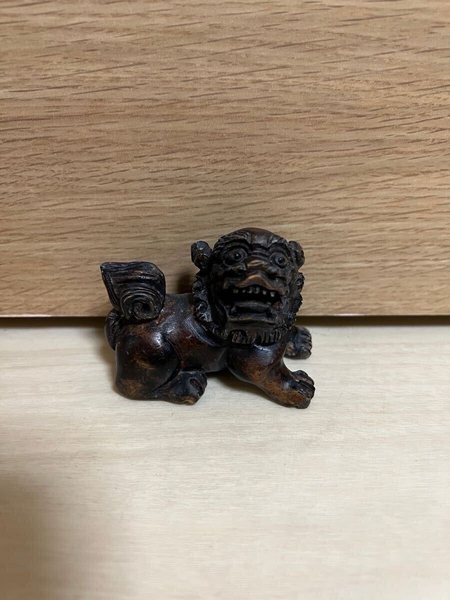 - 木彫り 獅子 シーサー 彫刻 フィギュア 置物 当時物 縁起物