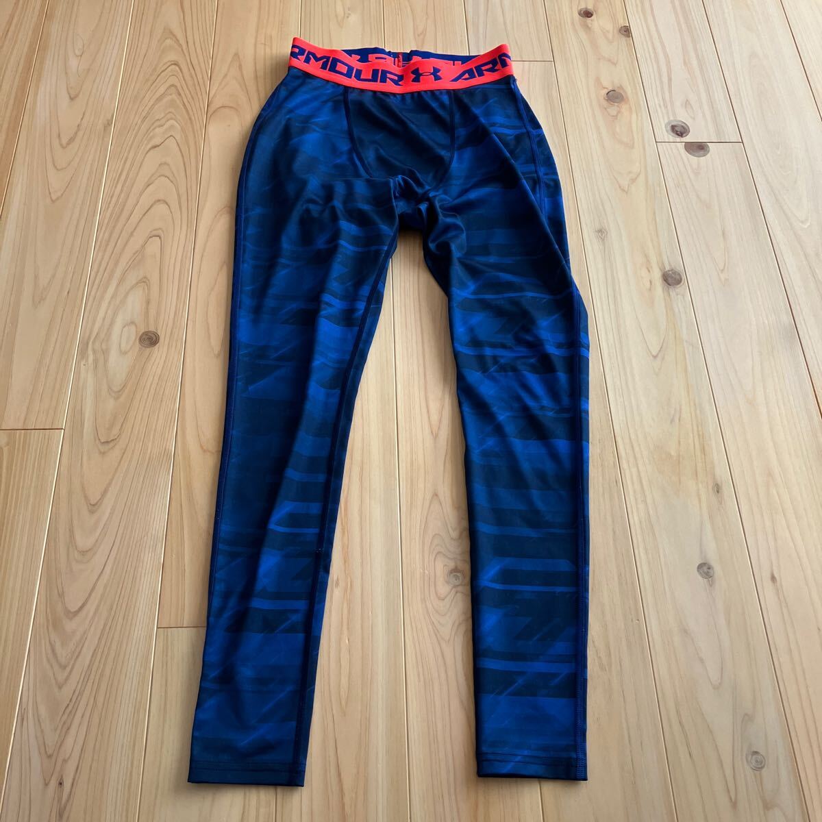 > UNDER ARMOUR ロングスパッツ MD 青 ヒートギア コンプレッション インナー M タイツ アンダー HG レギンス レギングス 総柄