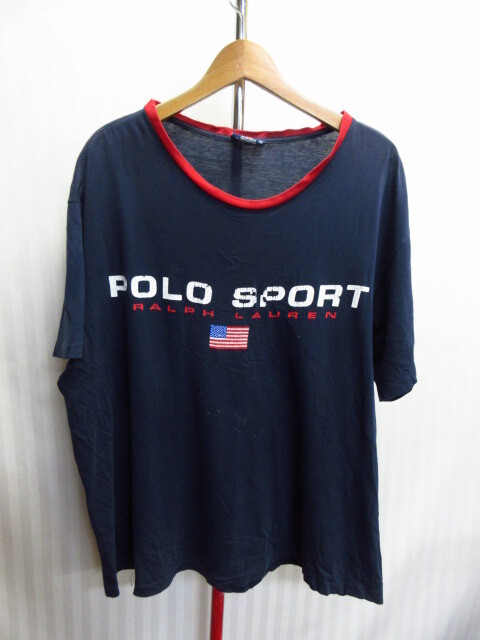 - USA製 ラルフローレン ポロスポーツ 90sヴィンテージ リンガーTシャツ メンズUS M Lサイズ 紺赤 ビッグロゴ半袖カットソー 05164