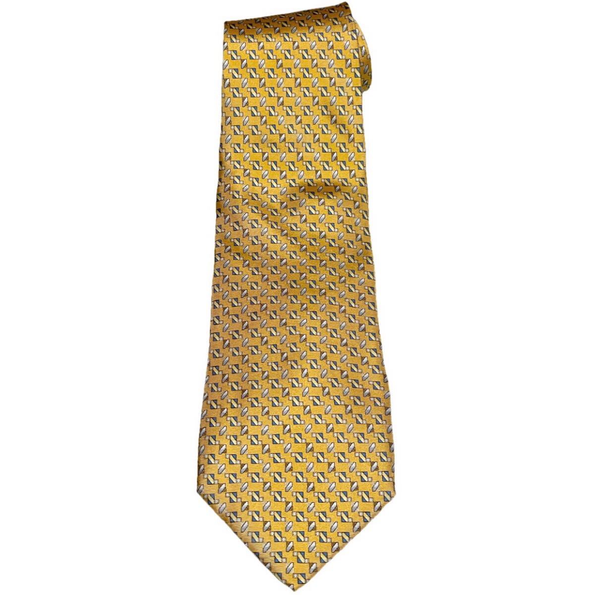 - MADE IN ITALY製 BALMAIN 総柄シルクネクタイ イエロー バルマン イタリア製 ネクタイ 黄色
