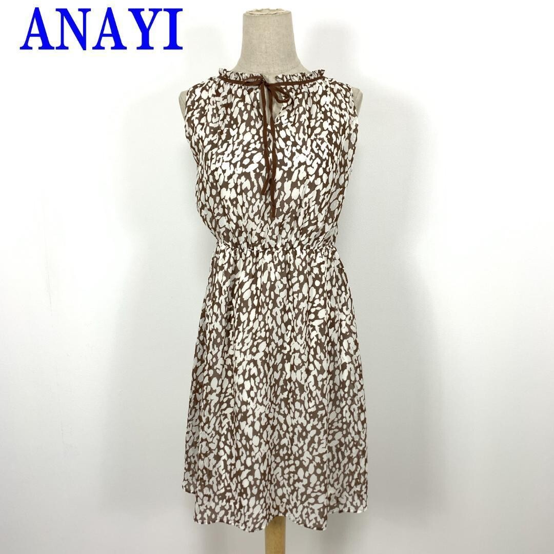- アナイ ノースリーブワンピース ブラウン ポリエステル100%ANAYI レオパード ヒョウ柄 ブラウン ホワイト リボン フリル 36 C2593