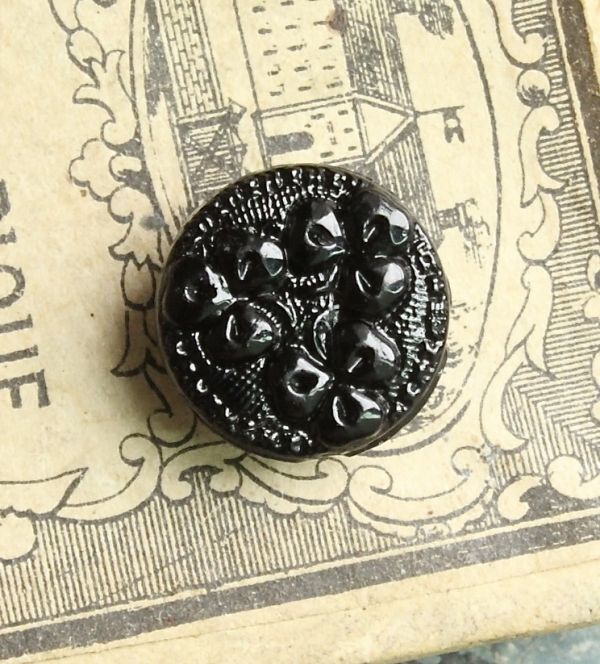 - 即決 ガラスボタン 1個 φ14mm クローバー ブラック 黒ガラス リーフ 植物 フランス輸入 ヴィンテージ