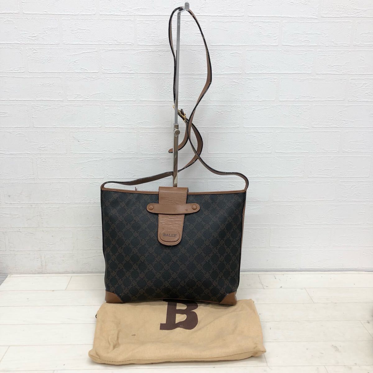 - M15〓 保護袋付き BALLY バリー ショルダーバッグ ブラック ブラウン 鞄 肩掛け鞄 革鞄 レザーバッグ カジュアル