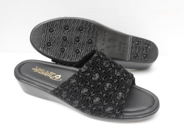 - 即決 S 文和 BW3183 黒 ブンワ 4E 日本製 外反母趾 幅広 4E 婦人 レディース 事務所 オフィス モード 履き サンダル ヘップ つっかけ