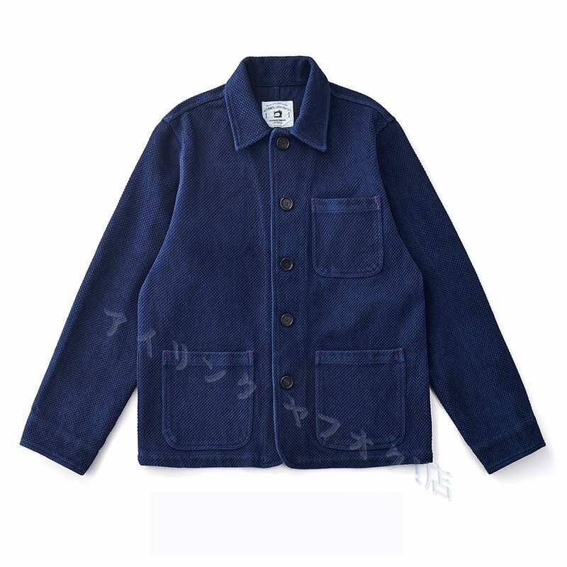 - 新品手作り 藍染め 刺し子 カバーオール 17OZ 綿100% ワークジャケット ブレザー sashiko indigo 上品 インディゴ M