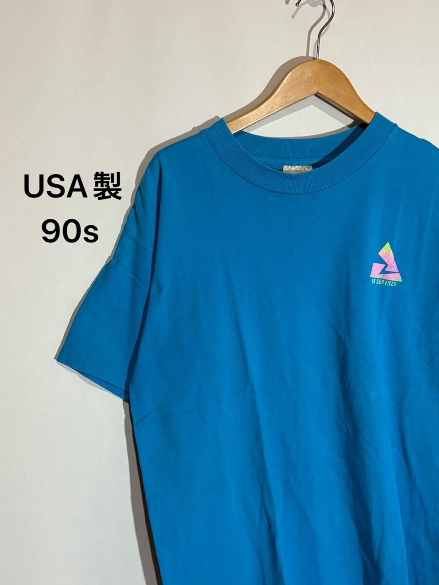 - USA製 90s oneita オニータ ヴィンテージ 半袖 Tシャツ アメカジ ブルー 90年代 アメリカ 企業 ロゴ プリント カンパニー シングルステッチ