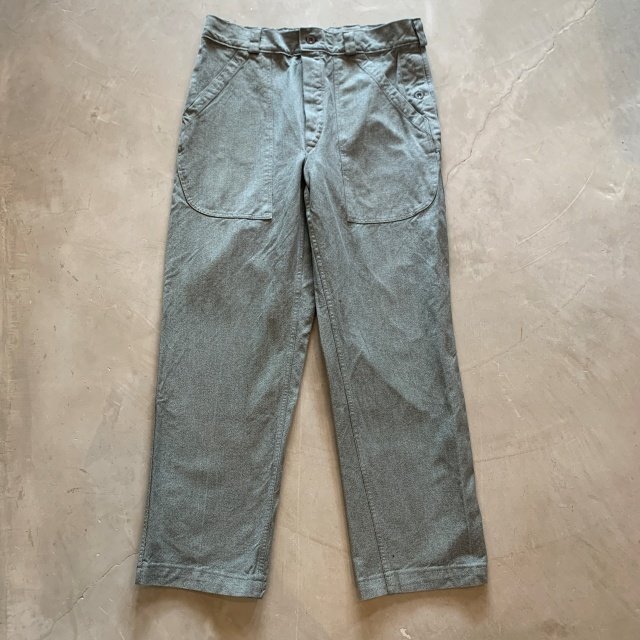 > 【W36】スイス軍 グリーンデニム ワーク オーバーパンツ■ビンテージ オールド ヨーロッパ古着 ユーロミリタリー ベイカーパンツ No.2