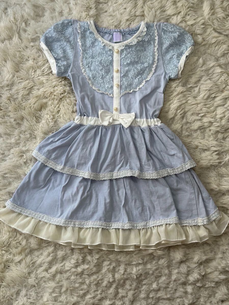 - axes femme kids/ワンピース/半袖ワンピース/レースワンピース/花柄/女の子/キッズ/kids/フリル/水色/130cm/フリル/発表会/姉妹ペアルック