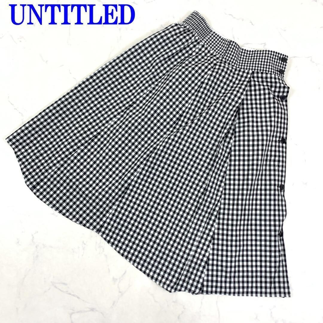 - UNTITLED アンタイトル スカート黒 白 ギンガムチェック ボタン取り外し不可コットン100% 2 C2992