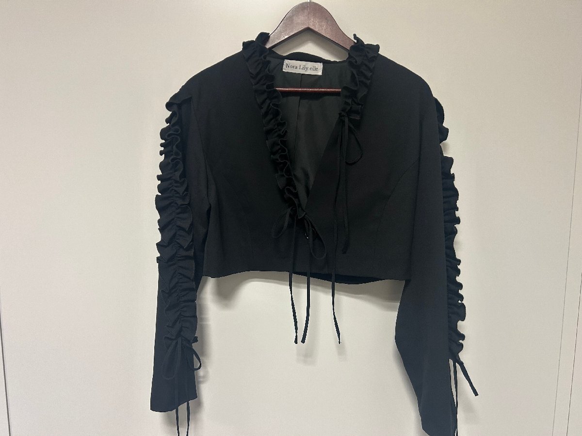 > Nora Lily elle ノラリリー エル フリル ショート ジャケット カーディガン ブラック ショート丈 フリーサイズ 春夏 おしゃれ 美品 現状品