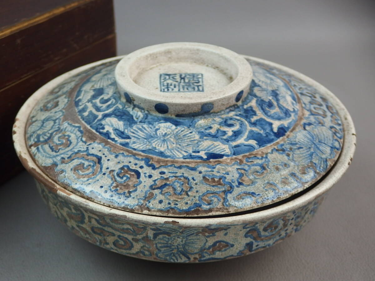 - 【骨董・茶道具】★古い 京焼★★染付花文大平 gj048sl.7 鉢 和食器