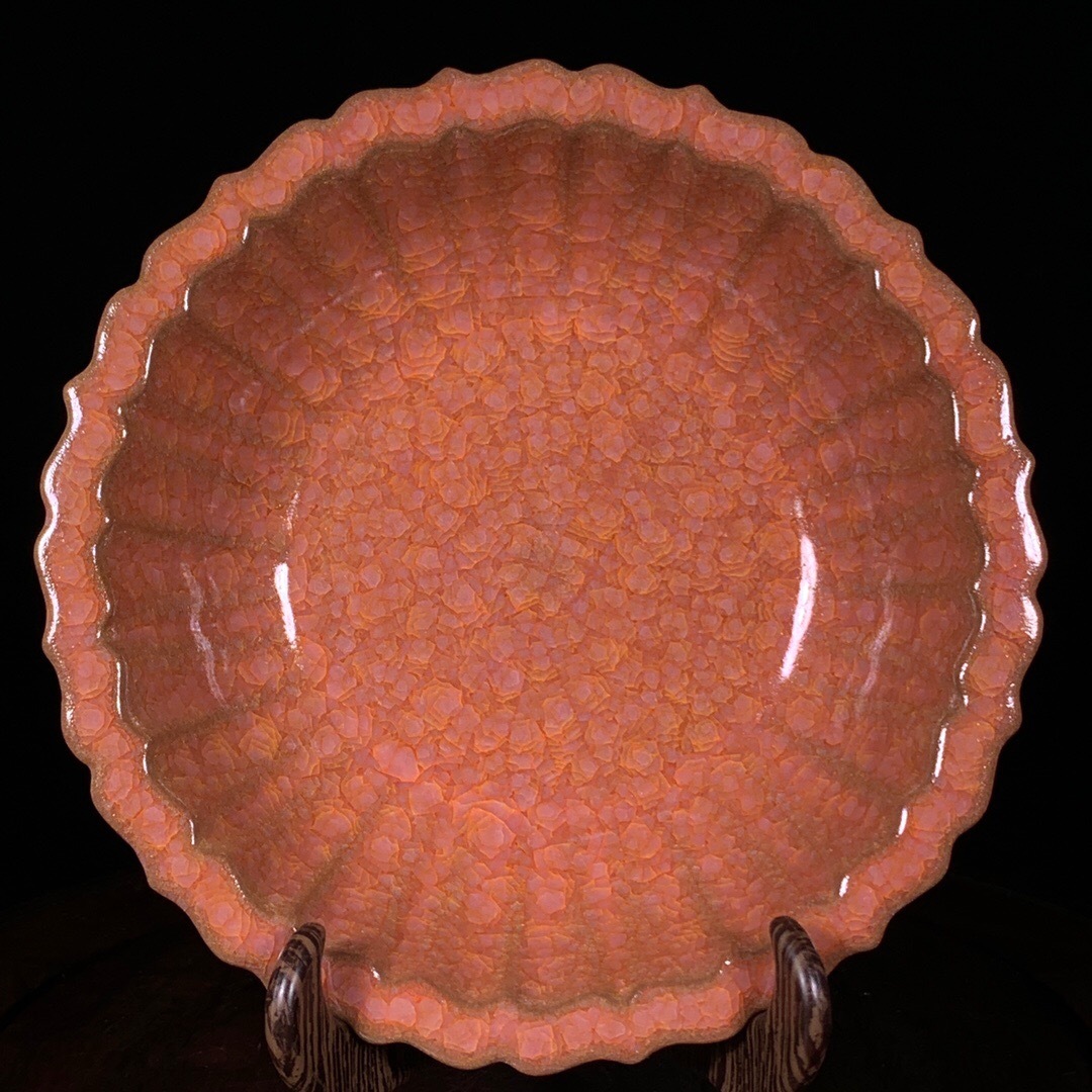 - 蔵友旧蔵出 宋 官窯 紅釉 冰裂紋 花口洗 古陶瓷品 置物 古賞物 中国古玩 中国古美術品