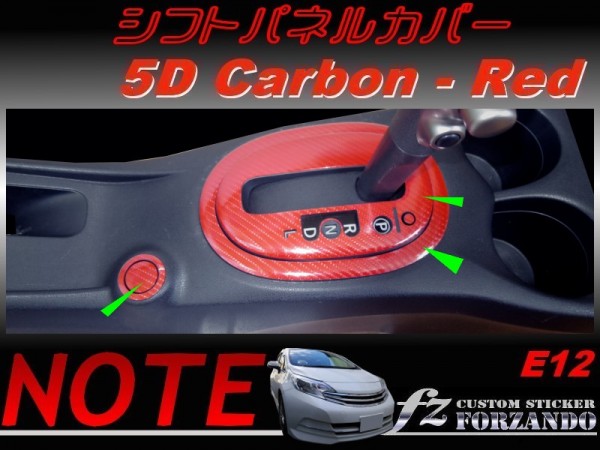 - ノート E12 シフトパネルカバー 5Dカーボン調 レッド