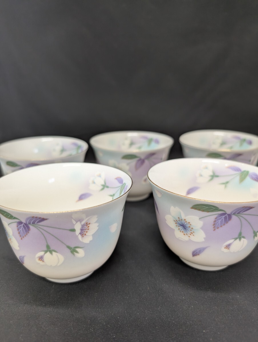 - 湯のみ 宇野千代 湯呑 5客 紫 金彩 茶器 湯のみ 金縁 桜柄 来客用