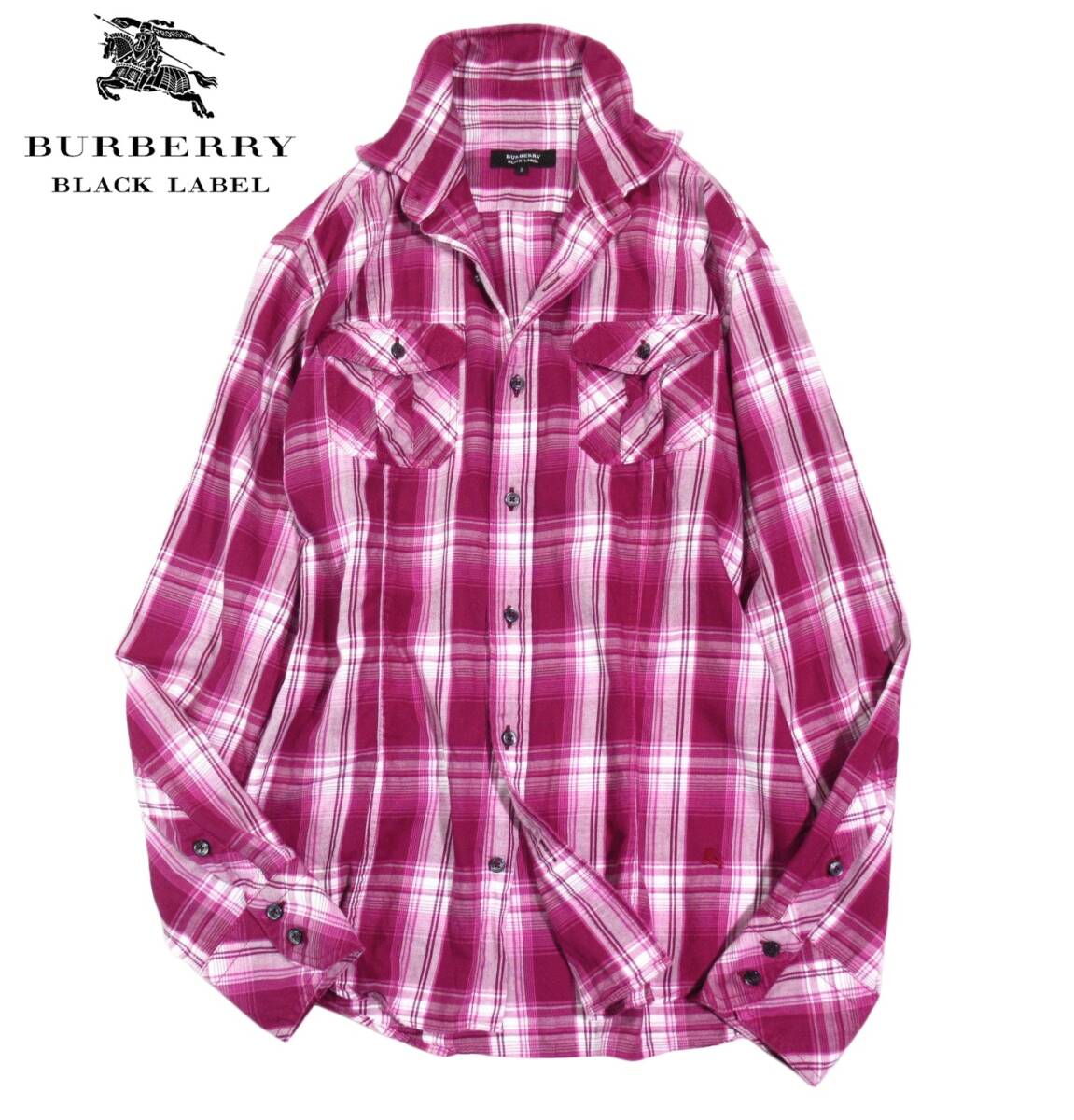 > バーバリーブラックレーベル BURBERRY BLACK LABEL ホース刺繍 ワイヤー衿 チェック シャツ 2 M