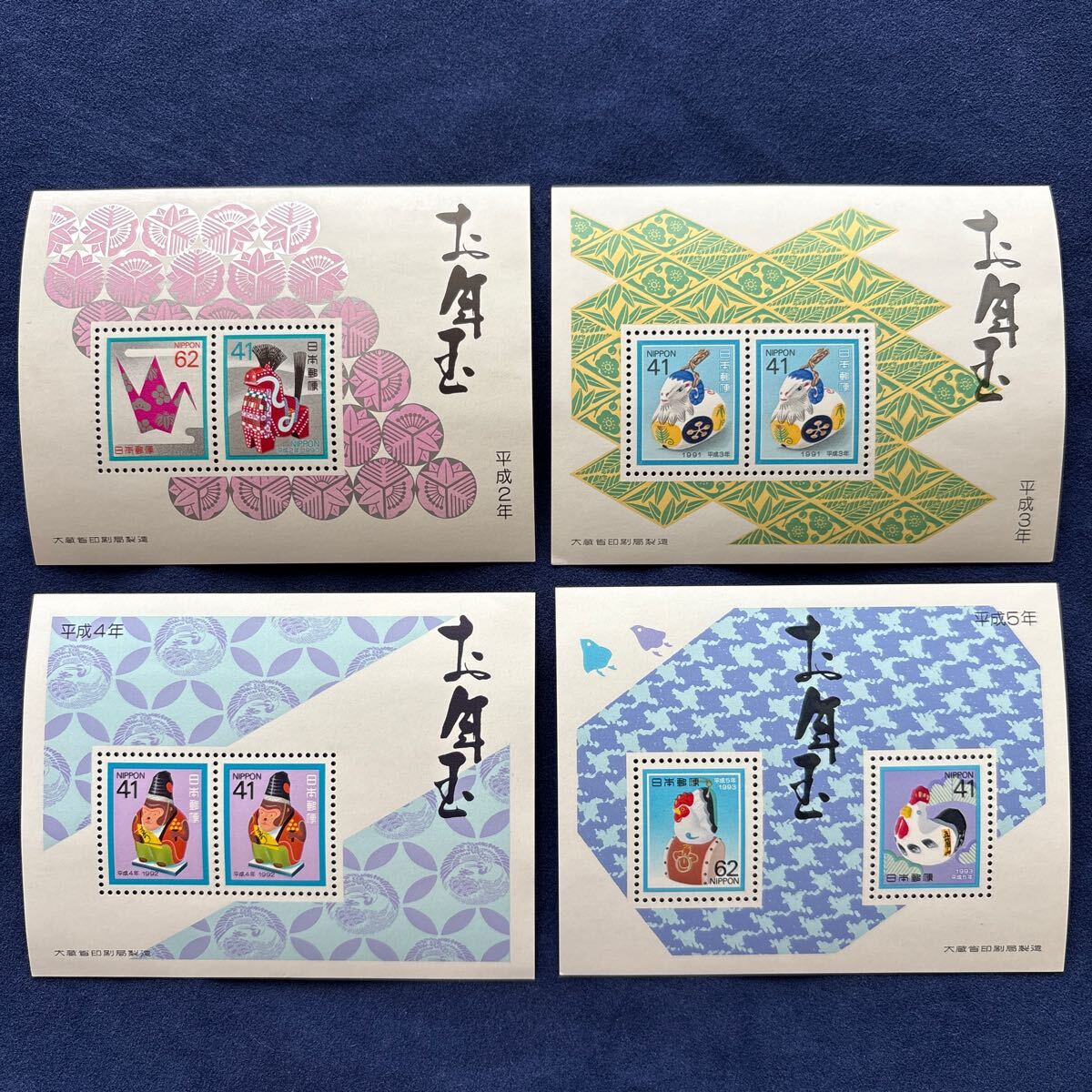 > お年玉切手【平成2年~平成5年】各1シート 未使用品 4枚〔41円×6枚+62円×2枚〕1990年~1993年 日本郵便 年賀 Japan stamp 美品 送料無料