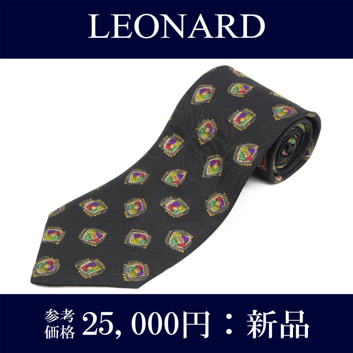> 送料無料 レオナール ネクタイ レギュラータイ 新品 シルク 黒 グレー オレンジ 赤 紫 黄緑色 四角 スクエア 葉 ブランド イタリア製 N739