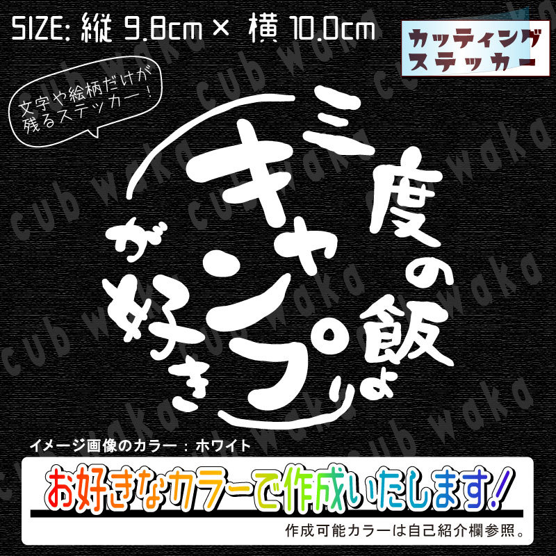 > 三度の飯よりキャンプが好き②ステッカー 文字絵柄だけ残るカッティングステッカー・車・カブ・二輪 CAMP・キャンプ・焚き火 リアガラス