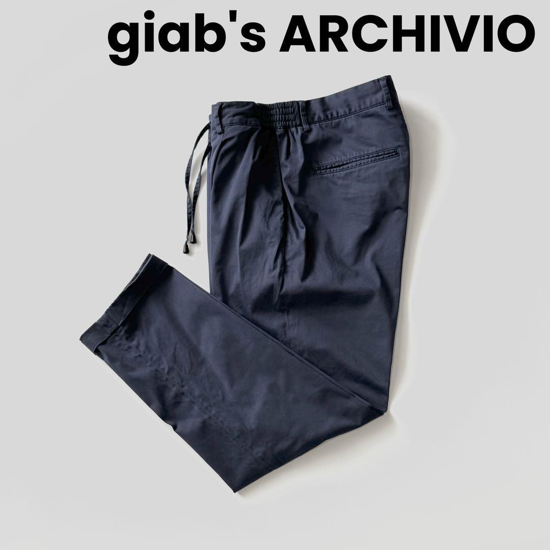 > giab's ARCHIVIO ジャブスアルキヴィオ マサッチョ ガーメントダイ コットン パンツ 46 ネイビー 紺 ジャブス ストレッチ 1プリーツ 正規
