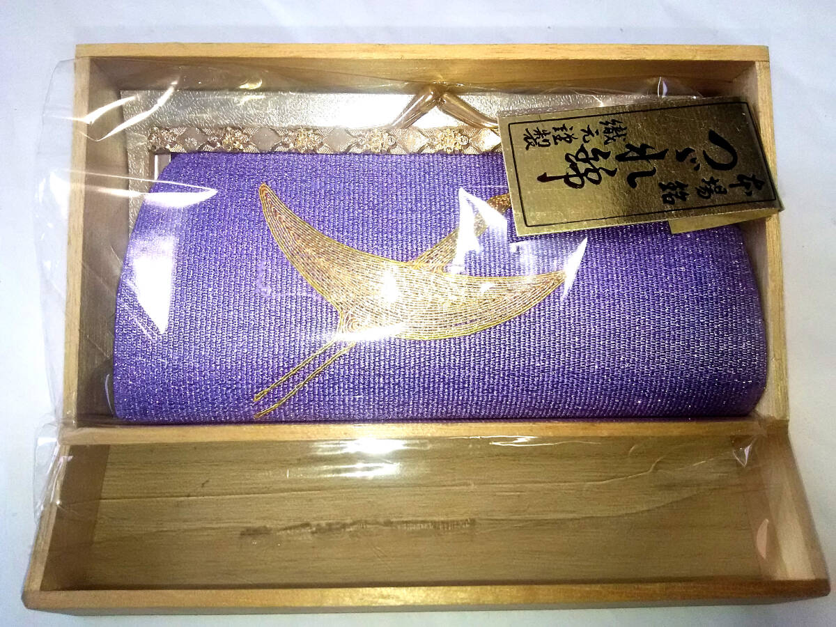 > □ 昭和レトロ 未使用 □ 本場銘 ~ つづれ錦 ~ 織元勤製 和製 財布 / 和風 着物 キジ 鶴 / 紫 パープル 金 ゴールド (色) アクセサリー