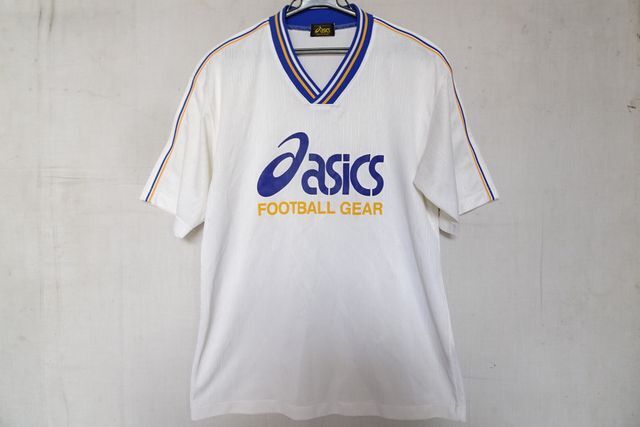- asics FOOTBALL GEAR/アシックス/XF6012/半袖Tシャツ/ユニフォーム/サッカー/Vネック/ストライプ織生地/白/ホワイト/Mサイズ(5/21R7)