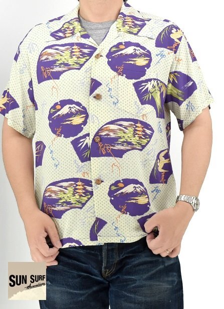 > レーヨンアロハシャツ「JAPANESE TRADITION」◆SUN SURF パープル XXLサイズ SS39418 サンサーフ 和柄 和風 ハワイアン 雪輪 日本製