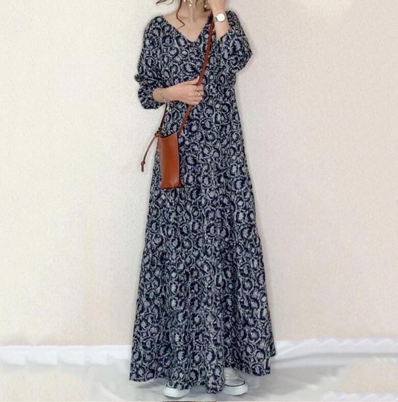 - 新入荷人気新作/オシャレ シフォンワンピース 花柄 Aラインワンピース 可愛い ワンピース 上品 長袖 総柄 着やせ ロングワンピース 大人