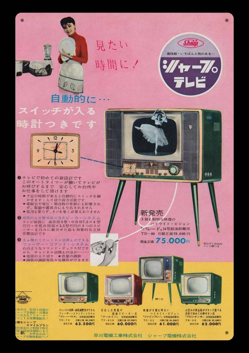 - 迫力の大型60cm / レトロ看板シリーズ / シャープ TV / 昭和・大正 / 新品・復刻看板 / 送料無料・匿名配送します