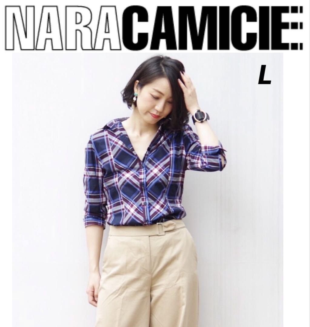 - NARACAMICIE ナラカミーチェ チェック 七分袖 ストレッチ シャツ ブラック L