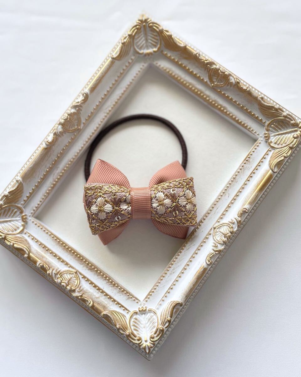 - ★★ハンドメイド86 ヘアゴム リボン インド刺繍リボン ヘアアクセサリー★★
