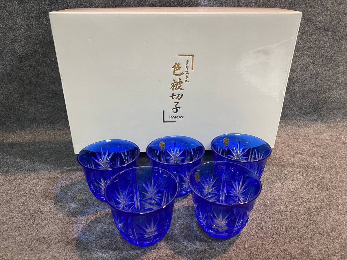 - 【ガラス食器】KAMEY カメイ クリスタル 色被切子 グラス 5客
