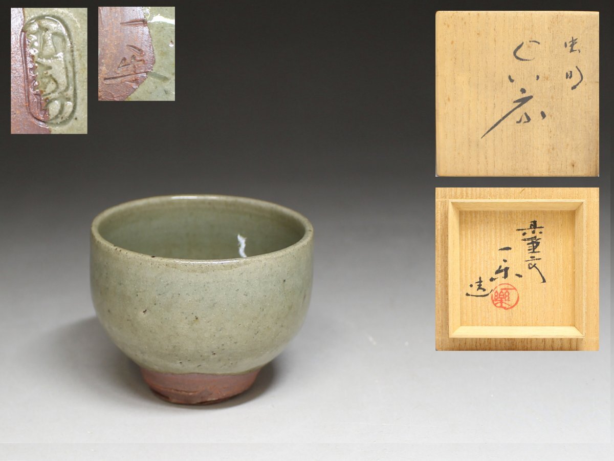 - ◆虫明焼・県重要無形文化財・黒井 一楽・ぐい呑・酒器・共箱・共布◆a2339M