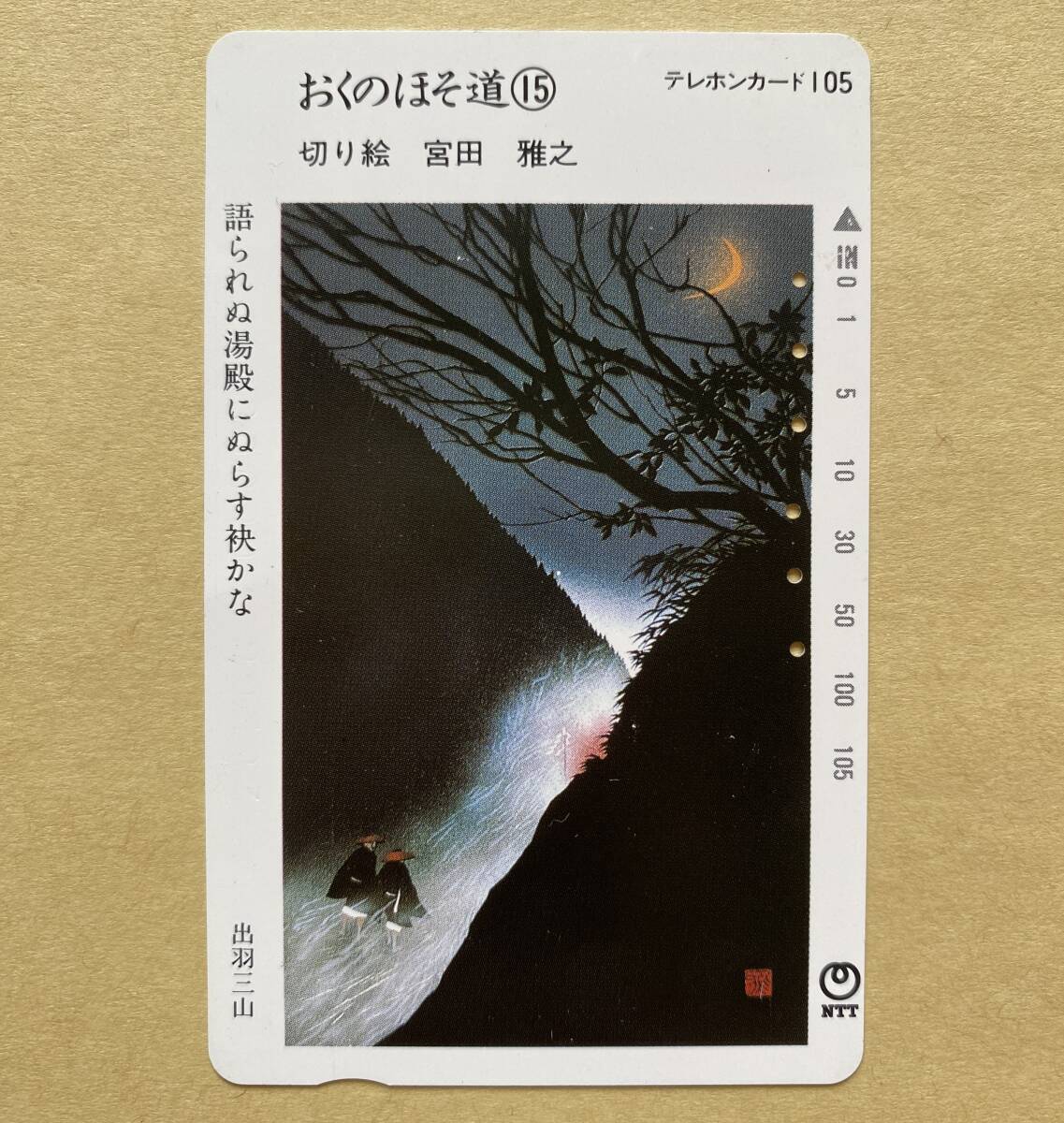- 【使用済】 テレカ おくのほそ道⑮ 語られぬ湯殿にぬらす袂かな 切り絵 宮田雅之