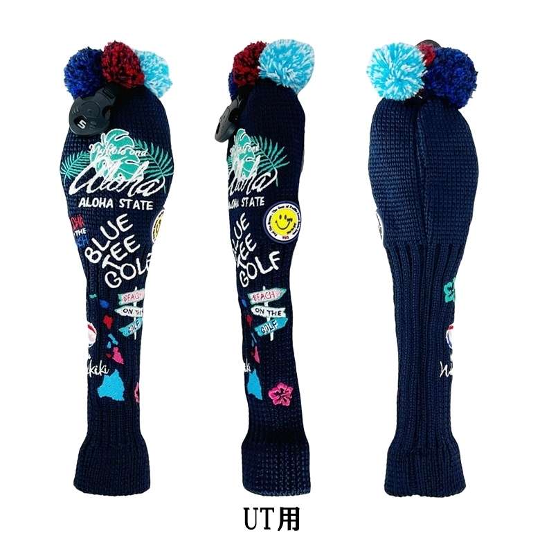 > ■オークション♪【UT:ネイビー】ブルーティーゴルフ【ニット アロハ オン ザ ビーチ】ユーティリティ用ヘッドカバー BLUE TEE GOLF NALO1