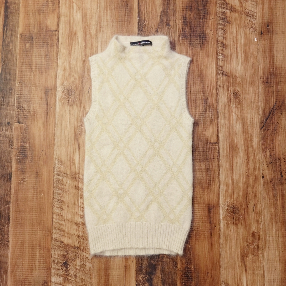 > 美品 adesso CERCHIO アンゴラ混 アーガイル柄 ハイネックニットベスト レディース ふわふわ ダイヤ柄 レイヤード Mサイズ アイボリー LH40