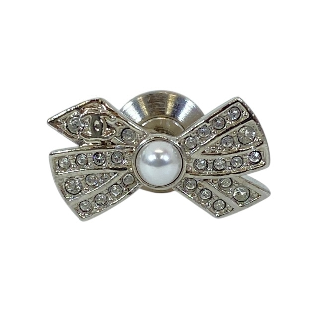 - シャネル ブローチ ピンブローチ アクセサリー ジュエリー 小物 リボン ココマーク メタル ラインストーン フェイクパール シルバー A22P