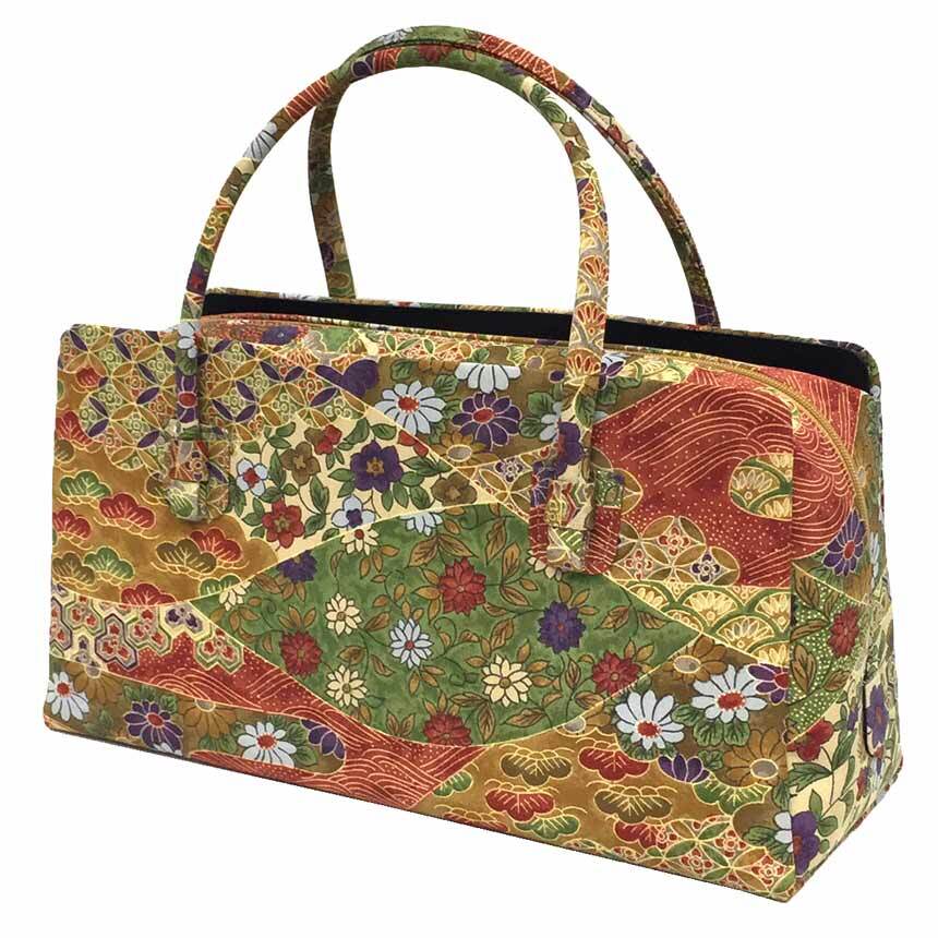 - 京やO240 和装バッグ 利休バッグ ハンドバッグ 着物 バッグ 習い事 お茶会 手提げ 青海波 七宝繋ぎ文 松 菊四季の草花 裂取り文様